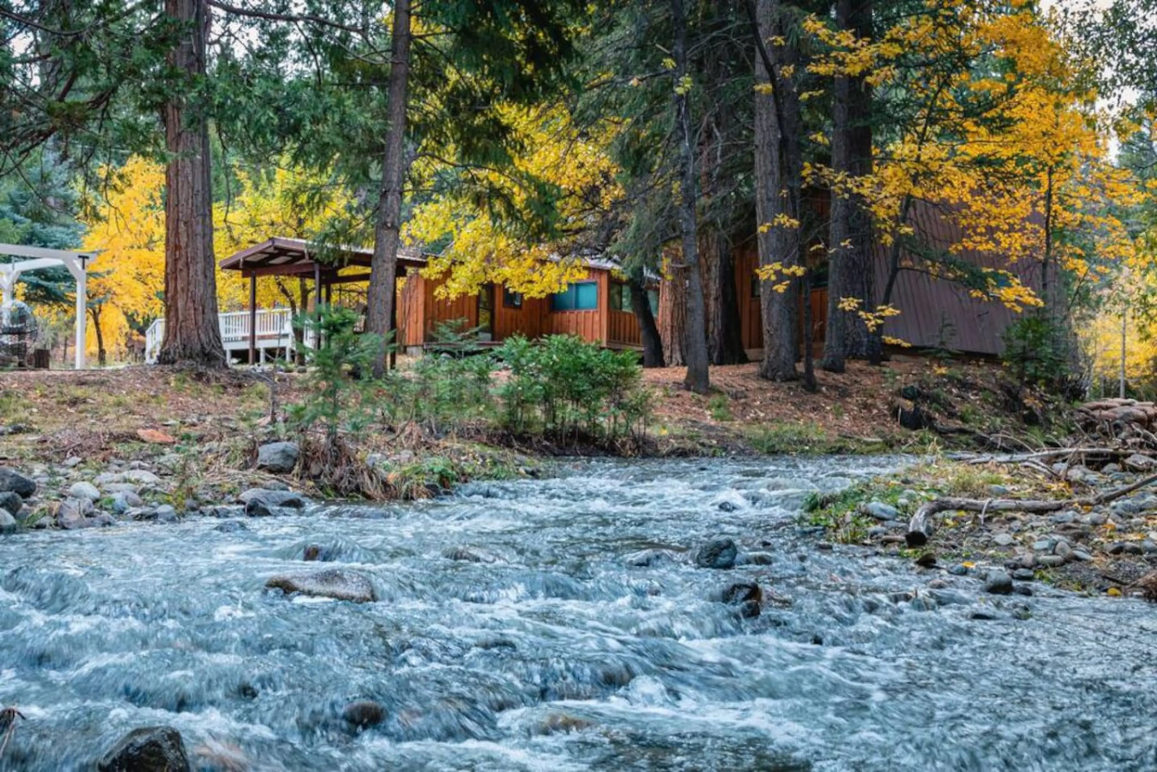 Private 10-acre forest retreat with nearly a quarter mile of Gold Run Creek frontage. Expansive deck, generator backup, fast WiFi, and exclusive fire pit for Cottage guests. Well-behaved dogs welcome. Water is visible and audible from the decks and multiple rooms inside. At night, with windows open...